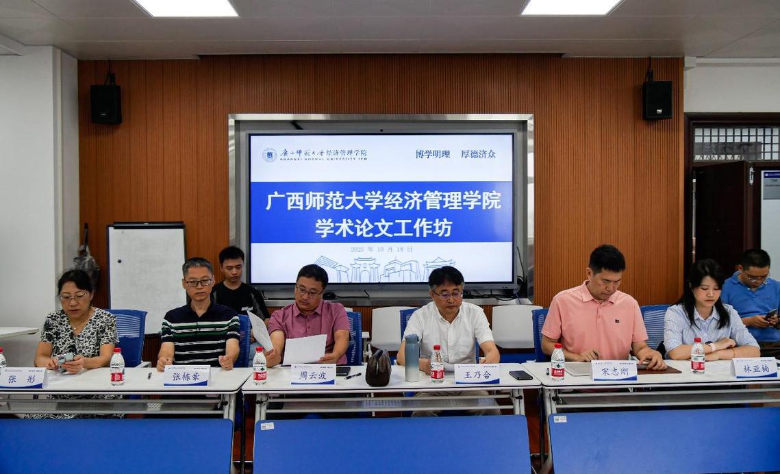 2025年10月18日,由《南开经济研究》主办,广西师范大学经济管理学院承办,《管理世界》《世界经济》《南开管理评论》《南开学报》及广西高校数字赋能经济发展重点实验室共同协办的独秀经管学术论文工作坊顺利举行,该活动是经济管理学院20周年院庆系列活动之一。本次学术论文工作坊特邀《管理世界》《世界经济》《南开管理评论》《南开学报》《南开经济研究》等期刊编审/编辑作为嘉宾,学院领导、青年教师及研究生代表共计50余人参与学术交流,会议由学院分管研究生工作负责人主持。
